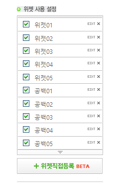 위젯 추가는 하단부에서 위젯직접등록 버튼을 눌러 가능하다.