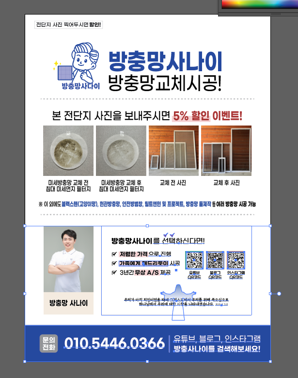 위 전단지는 내가 제작한 것이 아니라, 이 동기가 다른 업체에서 외주를 받은 것인데 원본 파일을 요구할 수 없는 조건이라고 하여 원본과 동일하게 ai 파일로 제작해준 것이다.