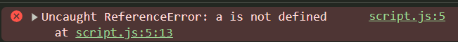 에러의 내용은 a라는 변수가 정의되지 않았다는 의미이다.