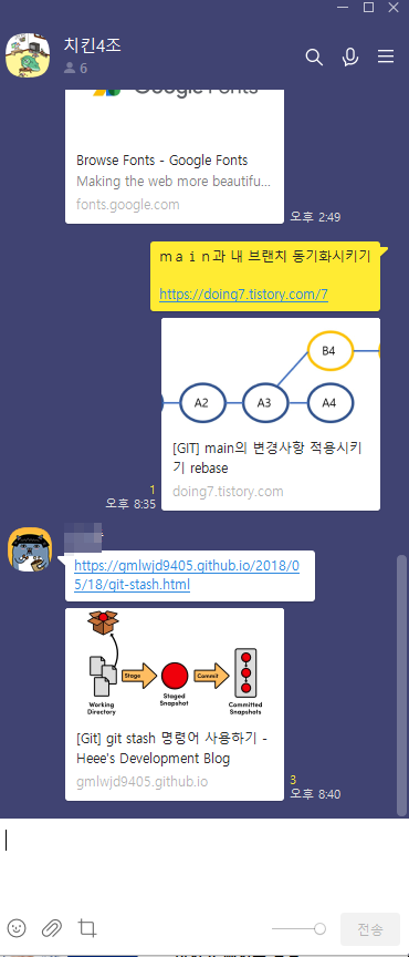각자 코드를 작성하는 것은 크게 어렵지 않으나 Git을 사용하는 과정에서 어려움이 많이 있는 듯하다.