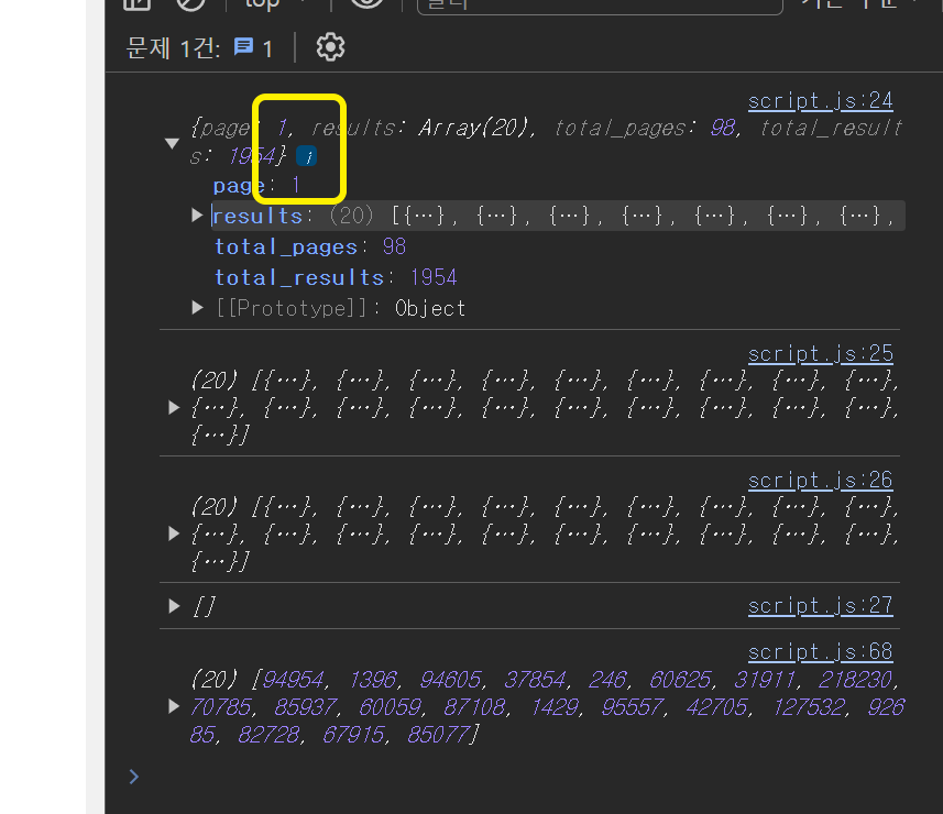 그래서 콘솔에서 이 배열들을 전부 찍어봄.
