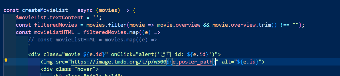 이런 경우 filter 메서드로 overview 프로퍼티가 빈 스트링인 경우 제외하도록 할 수 있다.