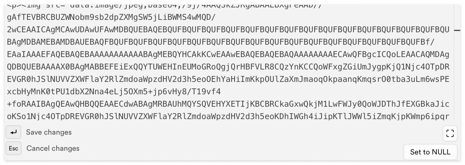 default 모듈에서는 이미지 삽입 기능이 없어 별도의 모듈로 정의하고 장착하였는데, 문제는 여기서 이미지를 업로드 하면 posts 테이블에 base64 방식으로 인코딩 된 이미지 URL이 1만자 이상 삽입되어버리는 문제가 발생했다.