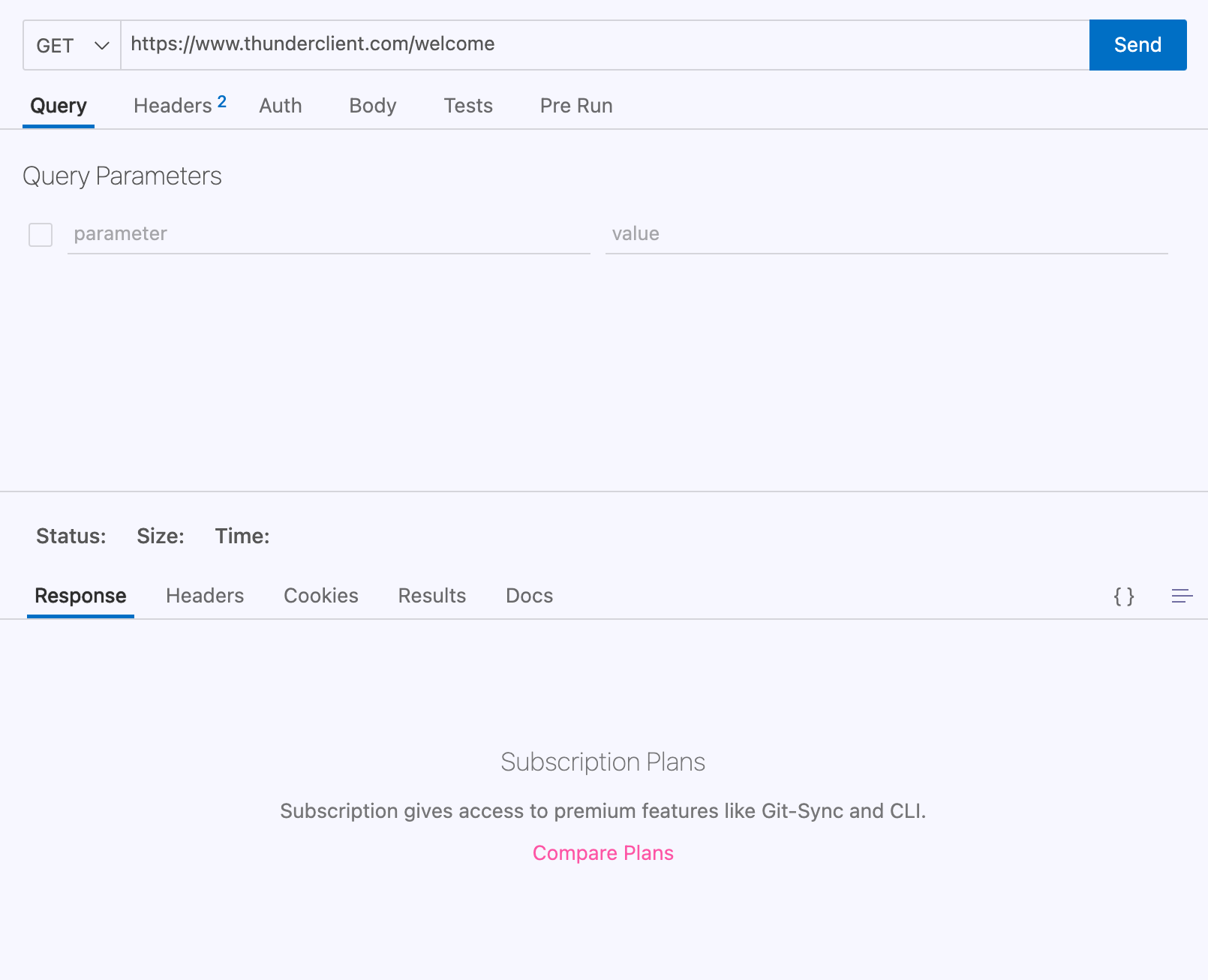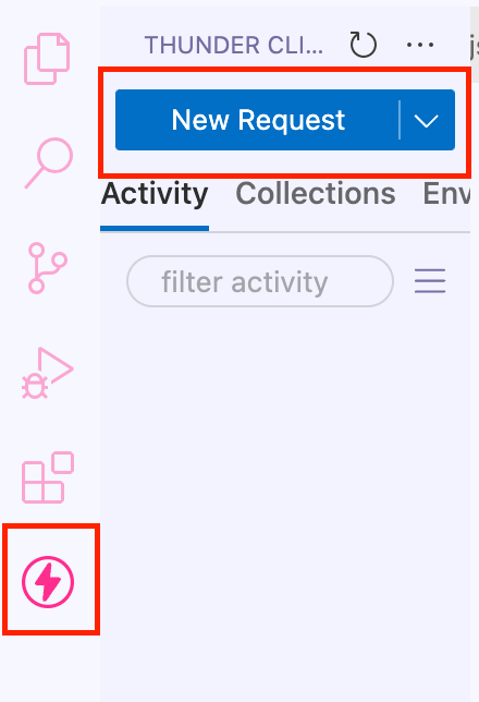 좌측 하단에 생긴 Thunder Client 메뉴에서 New Request를 누른다.