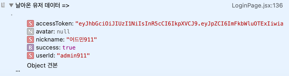 아래와 같이 토근이 배달 되며 로그인 성공을 알려주게 된다.