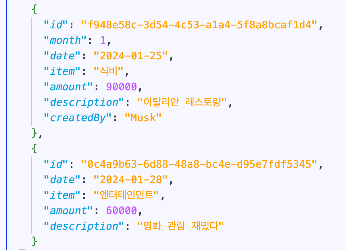 위 db는 "expenses"라는 key에 배열이 담겨 있는 형태이므로, API 요청을 할 때 엔드포인트는 /expenses가 된다.