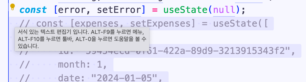 - setExpenses([...expenses, newExpense]) : 기존 expenses 상태의 불변성을 유지하면서 방금 만든 newExpense를 밀어 넣어 주고 있다.
