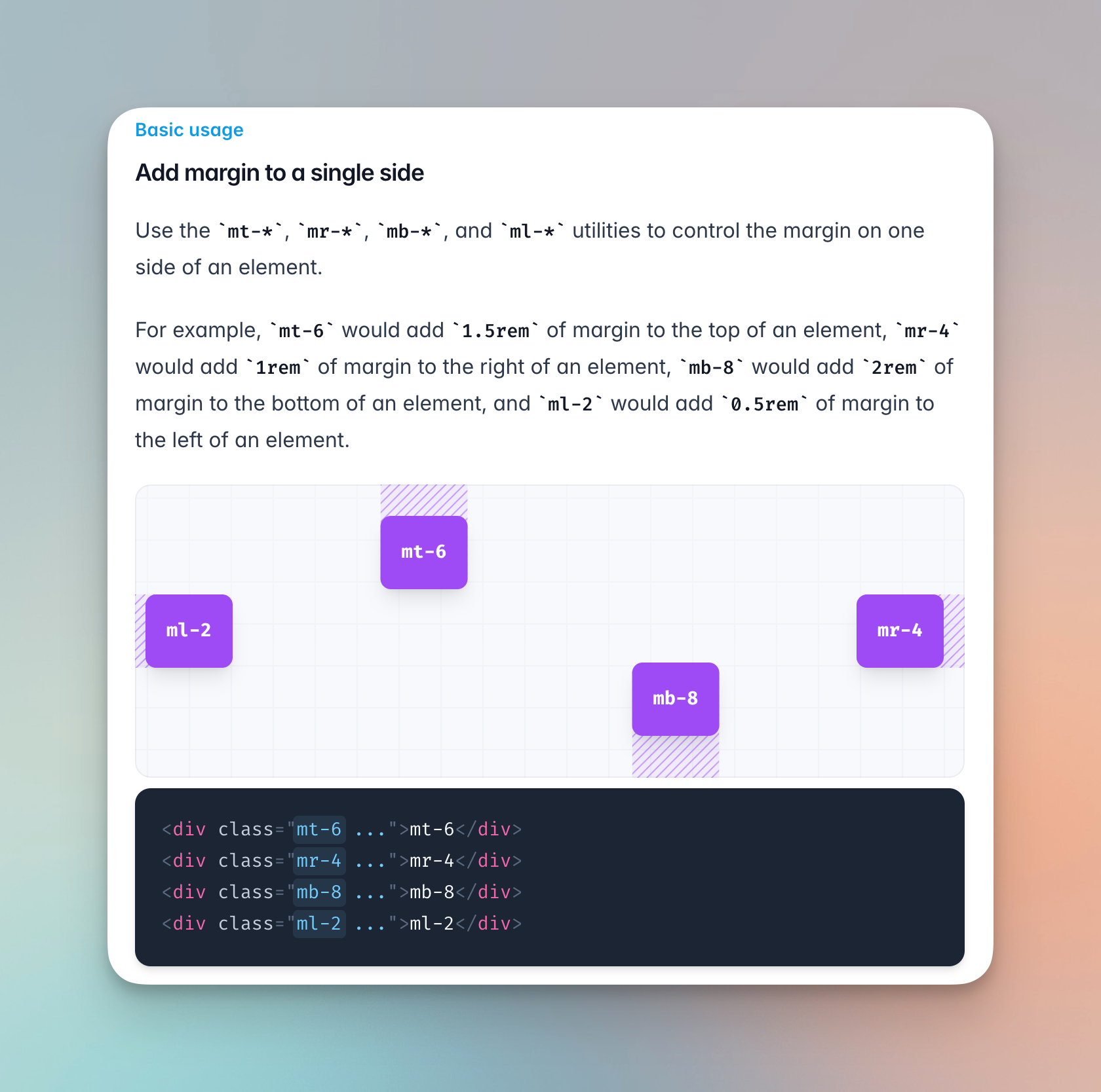 • m-{size}: 마진을 설정 (m-4, my-2, mx-4 등).