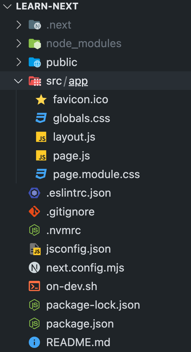 Next.js로 프로젝트를 생성하면 기본적으로 위처럼 폴더 구조가 생성이 된다.