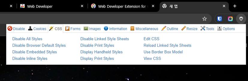 - Web Developer 검색 후 설치