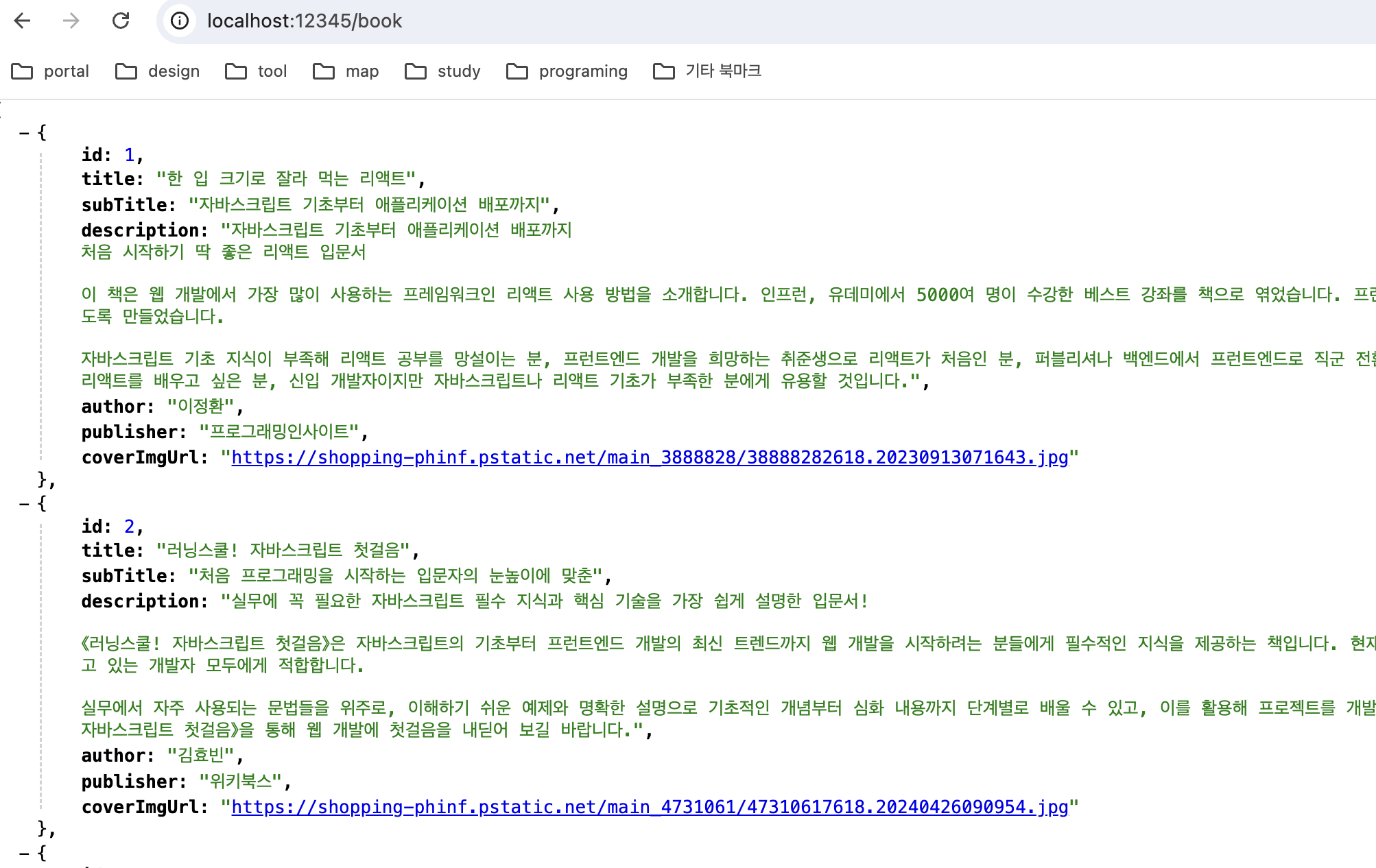 api 명세서를 보니 엔드포인트를 /book으로 하면 모든 도서 정보를 불러온다고 하는데 진짜 되는 것인지 확인해보자.