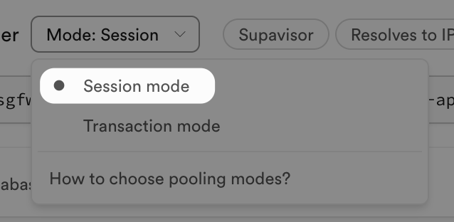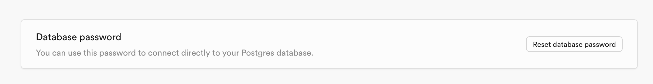 만약 데이터베이스 패스워드를 분실했다면 아까 supabase database 세팅 페이지에서 조금만 스크롤을 내리면 리셋할 수 있는 메뉴가 있으니 다시 만들면 된다.