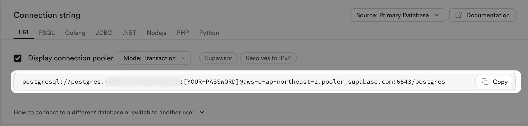 DATABASE_URL=postgresql://postgres.qfp:[YOUR-PASSWORD]@aws-0-ap-northeast-2.pooler.supabase.com:5432/postgres