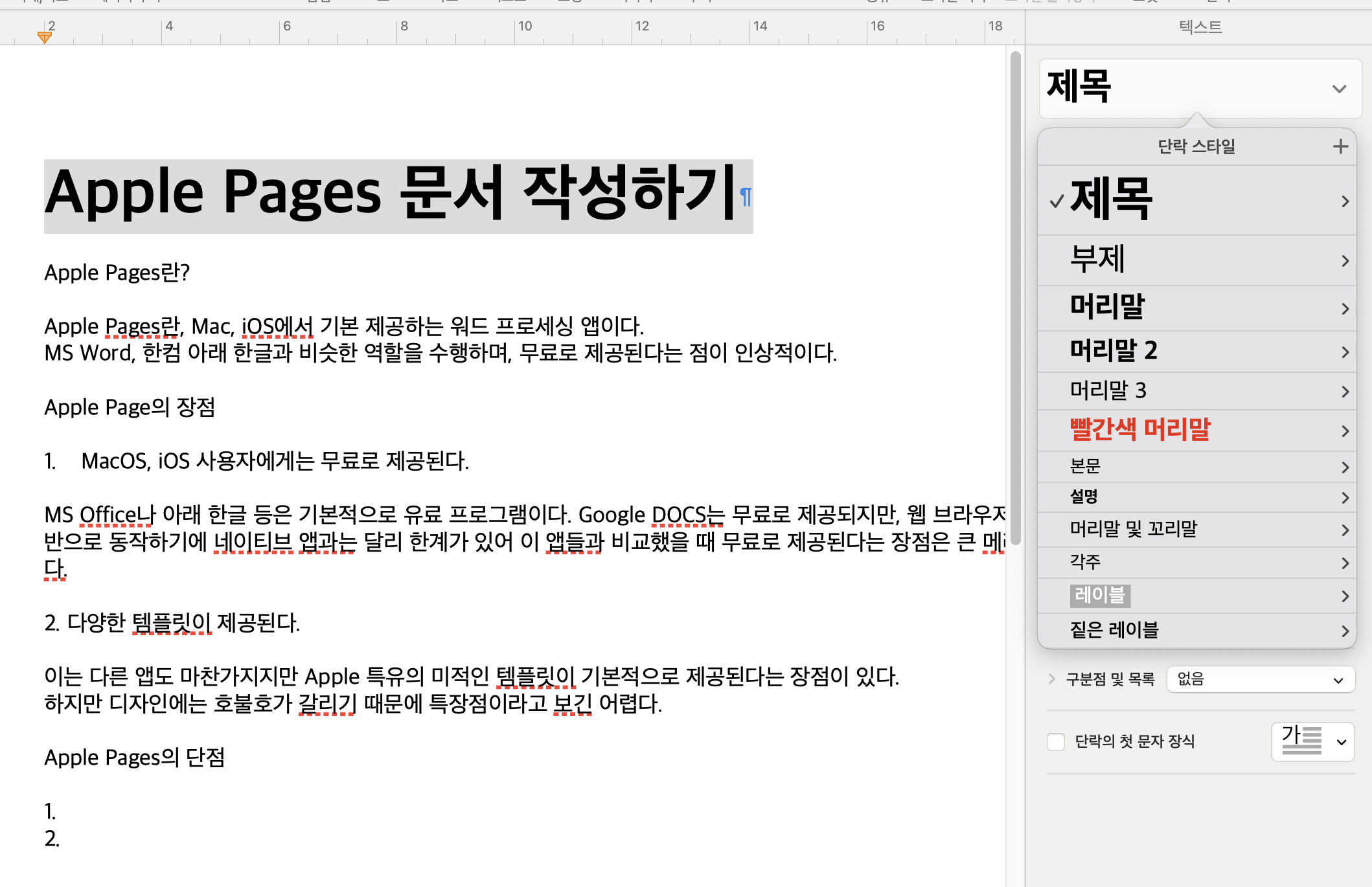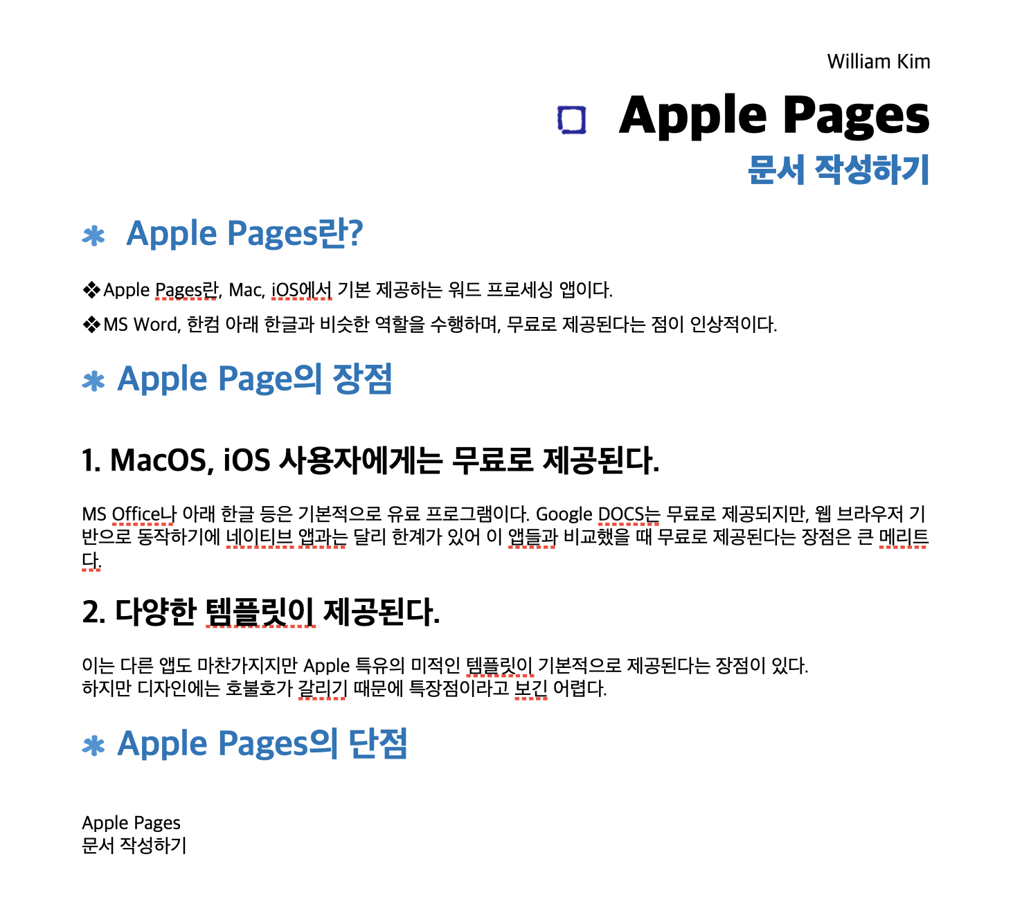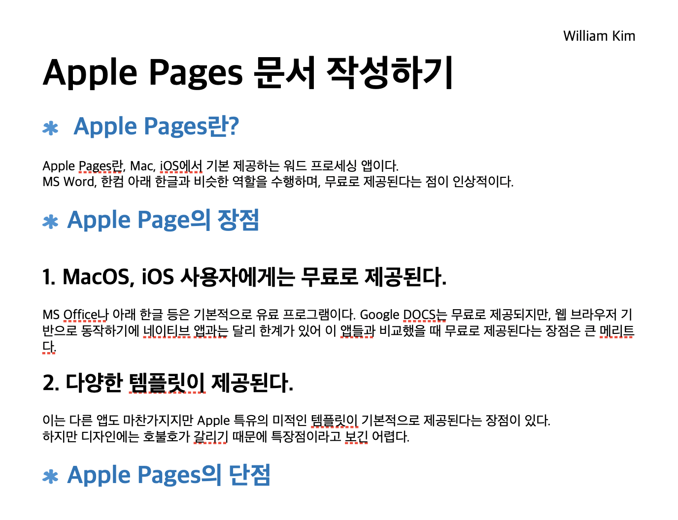 Apple Pages란 워드 프로세싱 앱으로, MS Word, Google Docs, 아래 한글 등과 비슷한 앱이다.