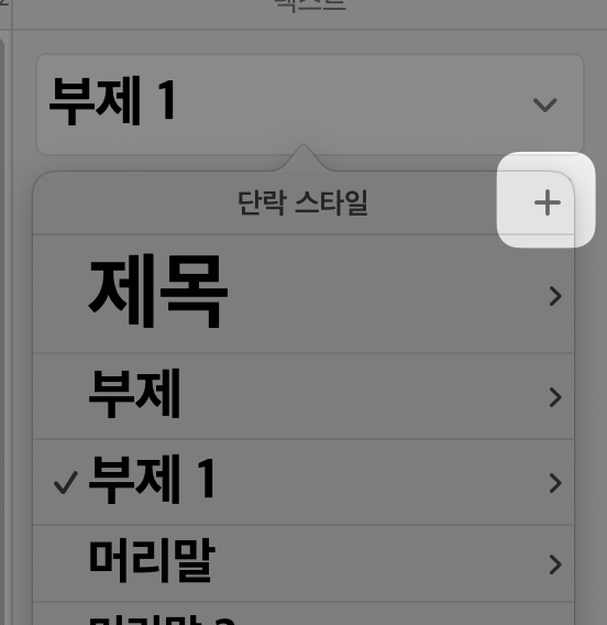만약 기본으로 제공해주는 서식 외에 다른 단락 스타일을 커스터마이징 하고 싶다면 플러스 버튼을 눌러 서식을 바꿔주고 업데이트 버튼을 눌러주면 된다.