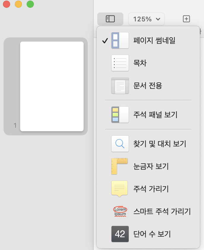 문서가 여러 장이면 페이지를 나눠서 썸네일을 보여주는 페이지 썸네일을 띄워 놓고 작업하면 좋을 것이다.