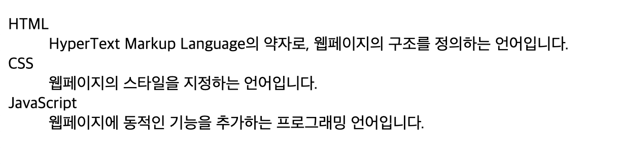 <dd>HyperText Markup Language의 약자로, 웹페이지의 구조를 정의하는 언어입니다.</dd>