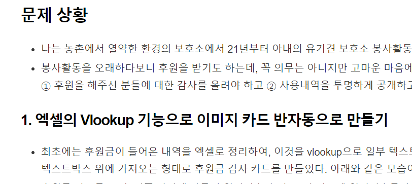 제목1, 제목2 등 제목 크기의 변화가 티스토리에서 기본으로 제공하는 기능에서 차이가 크지 않아 눈으로 보았을 때 가독성이 떨어져 보였다.