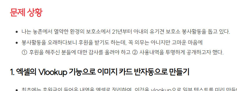 문제상황이라는 제목1의 폰트 사이즈를 더 키우거나 색상을 다른 것으로 바꾸면 가독성이 조금 더 나아질 것 같다.