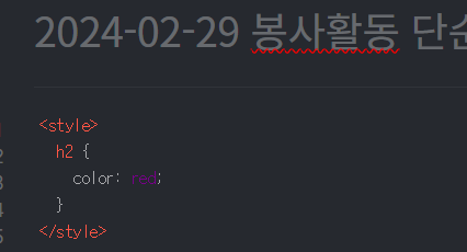 만약 본인이 무조건 h2 태그(제목1)은 폰트사이즈와 색상을 고정할 것이라면 필자와 같이 수정하면 된다.