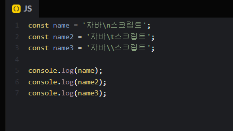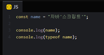 const name = '자바스크립트';와 같이 변수의 값으로 문자를 할당하는 경우.
