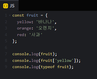 오브젝트 변수에 할당된 값을 불러올 때는 key값['value값']의 형태로 불러온다.