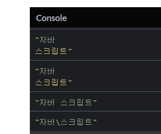 `` 백틱 안에 글자를 넣으면 우리가 코드입력창에서 보는 그대로 String을 출력 가능하다.