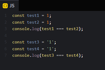 위의 코드를 보면 test1과 test2라는 변수는 모두 Number type을 사용해 값을 1로 할당하였고 이 두 개의 변수가 같은 값인지 === 를 통해 콘솔에 띄웠더니 true 값이 출력됐다.