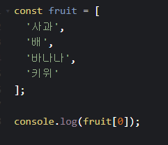 기본형은 변수명 = ['값1', '값2', '값3']; 이다.
