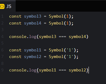 여기서 중요한 것은 Symbol 타입을 사용할 때는 반드시 S를 대문자로 사용해야 한다.