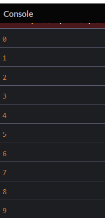 따라서 콘솔에는 0부터 9까지 차례대로 찍히게 된다.
