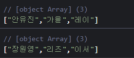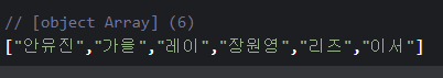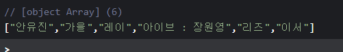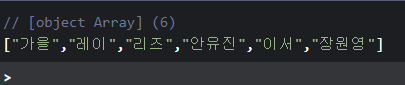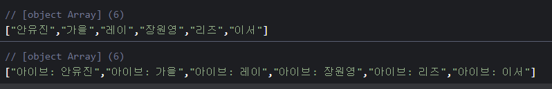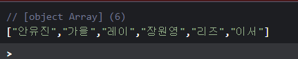 차례대로 맨 위는 iveMembers = ['안유진', '가을' ...] 으로 입력해둔 array의 값이다.