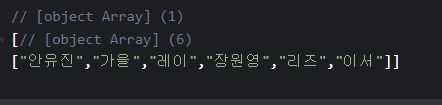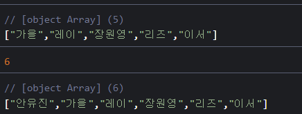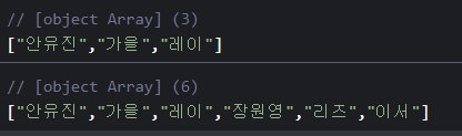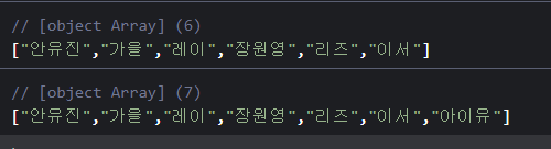원래는 이서까지 6명의 멤버였는데, iveMembers.push('아이유') 를 통해 아이유를 추가했다.