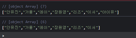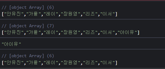 그리고 다시 iveMembers를 콘솔에 출력해보니 아이유가 빠져있다.