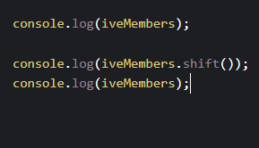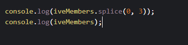 shift 함수를 사용하니 가장 첫번째인 0번 인덱스의 안유진을 반환했고, 다시 콘솔에 iveMembers를 확인해보니 안유진이 삭제되어있다.