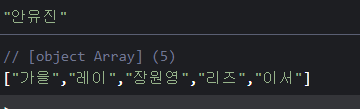 원래는 안유진부터 어레이의 값으로 넣었는데 ㄱ - ㄹ - ㅇ- ㅈ 순으로 오름차순 정렬되었다.