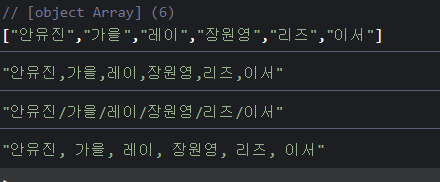 그리고 join()을 쓰니 리스트가 해제되고 스트링 타입으로 하나로 묶였다. join을 사용한 변수를 typeof 해보면 object가 아니라 string으로 나온다.